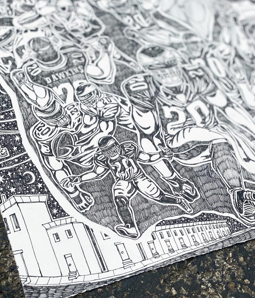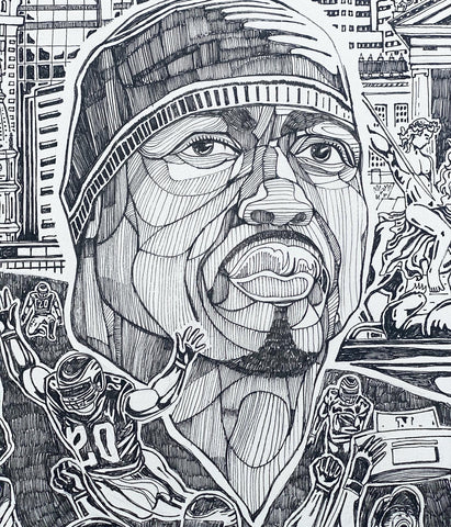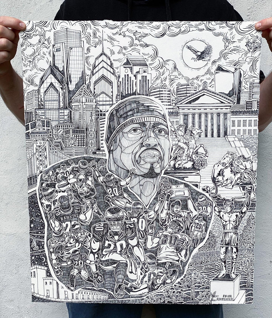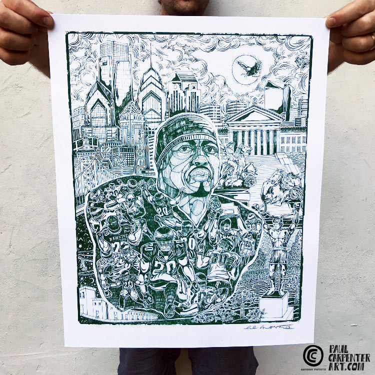 Hand drawn and screen printed in Philadelphia, PA. This illustration is local artist Paul Carpenter's tribute to everyone's favorite player.