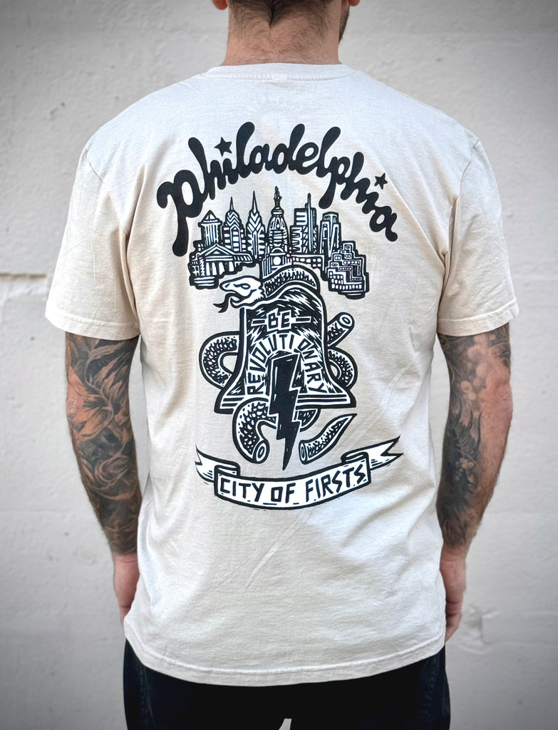 ["City Editions","City Of Firsts","CLOTHING","NEW","Paul Carpenter Art","PHILADELPHIA","Philadelphia Apparel","PHILADELPHIA SKYLINE","philly apparel","screenprint","TEE","TEE SHIRT","UNISEX"]