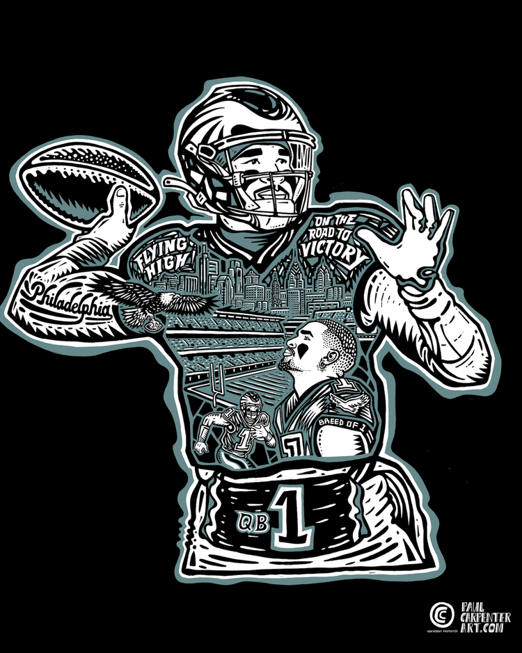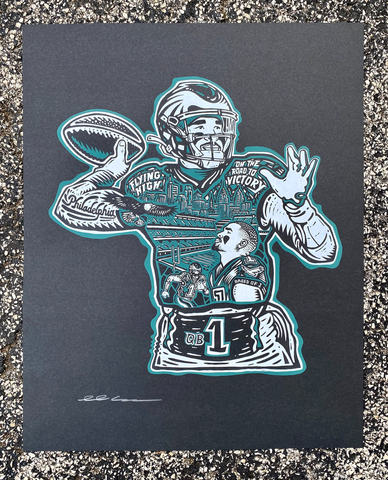 Hand drawn and screen printed in Philadelphia, PA, this illustration by local artist Paul Carpenter.