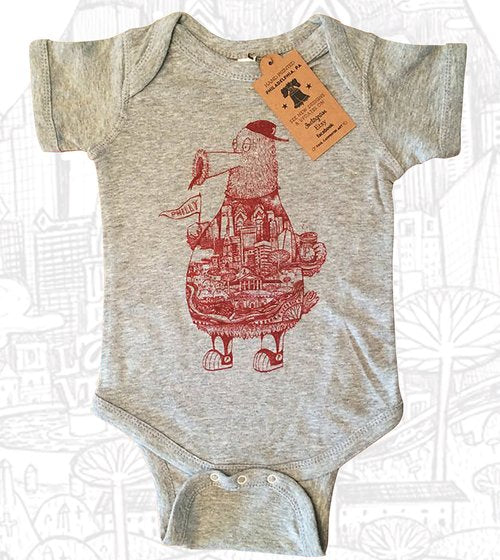 Hand drawn by Philadelphia based artist Paul Carpenter, this illustration is screen printed onto a high quality onesie.
