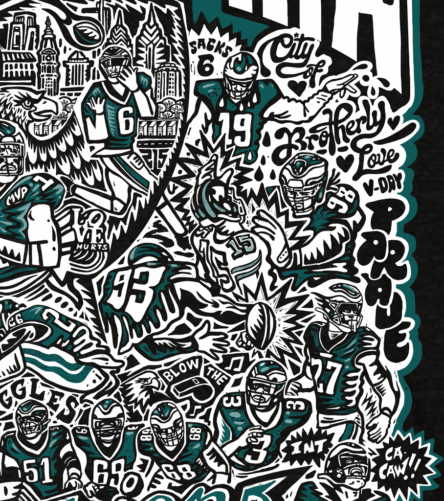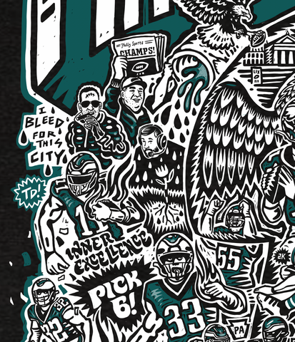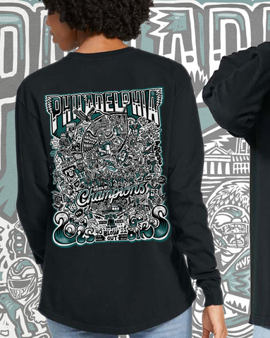 Hand drawn by Philadelphia based artist Paul Carpenter, this detailed illustration is finely screen printed onto a high quality 100% Cotton Comfort Colors Long Sleeve Tee.