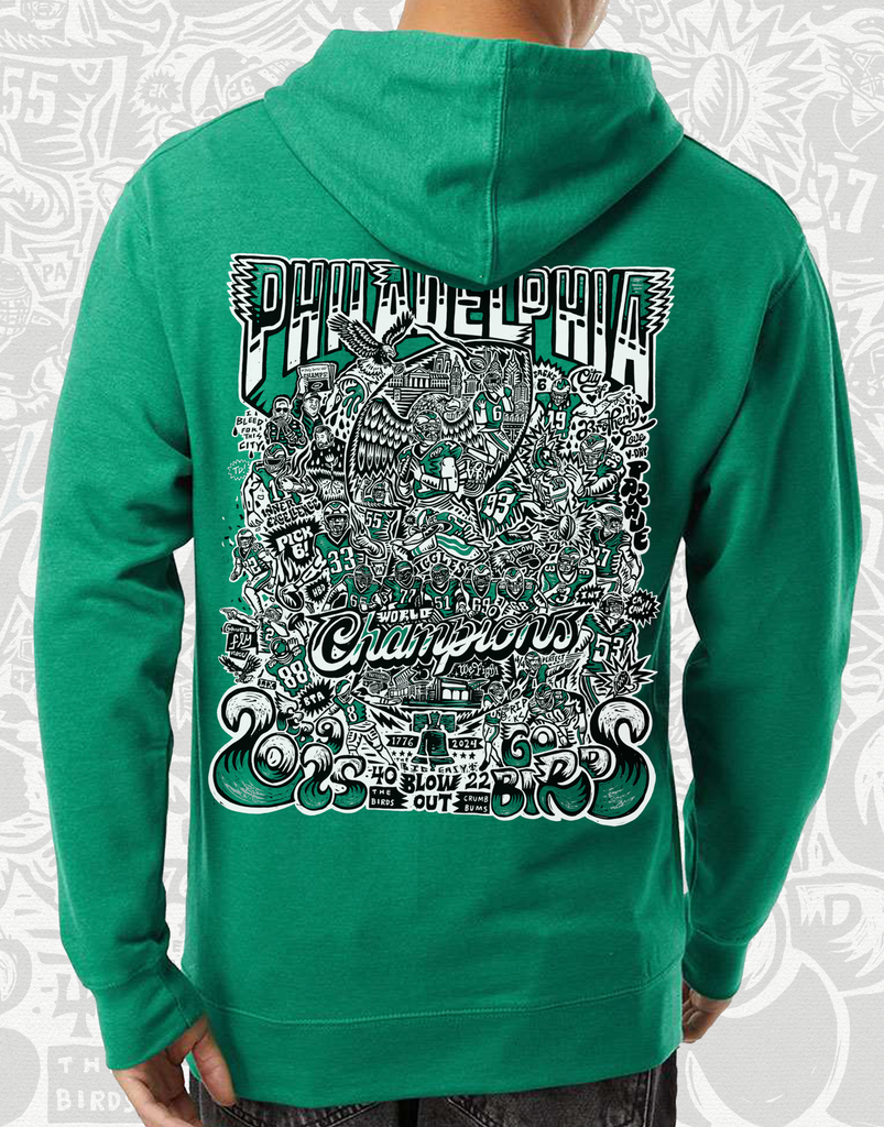 ["Birds Gear","CHAMPIONS","City Editions","CLOTHING","HOODIE","Kelly Green","LONG SLEEVE","NEW","Paul Carpenter Art","Paul Carpenter ArtUnisex","Philadellphia Eagles","PHILADELPHIA","Philadelphia Apparel","PHILADELPHIA EAGLES","PHILADELPHIA SKYLINE","philly apparel","Philly Sports","screenprint","UNISEX"]