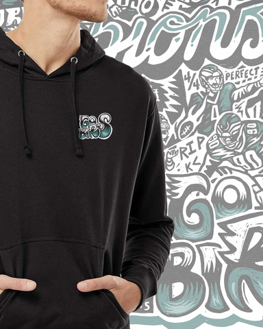 Hand drawn by Philadelphia based artist Paul Carpenter, this detailed illustration is finely screen printed onto a high quality Midweight Pullover Hooded Sweatshirt.