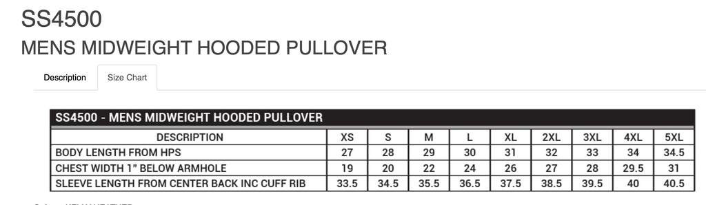 SIZE CHART XS S M L XL 2XL 3XL Body Length From Hips 27 28 29 30 31 32 32 Chest Width 1" Below Armhole 19 20 22 24 26 27 28 Sleeve Length 33.5 34.5 35.5 36.5 37.5 38.5 39.5