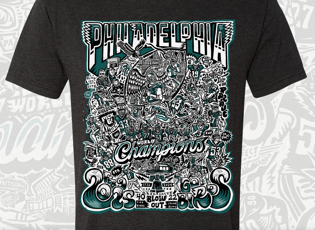 ["Birds Gear","CHAMPIONS","CLOTHING","NEW","Paul Carpenter Art","Paul Carpenter ArtUnisex","Philadellphia Eagles","PHILADELPHIA","Philadelphia Apparel","PHILADELPHIA EAGLES","philly apparel","Philly Sports","screenprint","Street Wear","TEE","TEE SHIRT","TEESHIRT","UNISEX"]